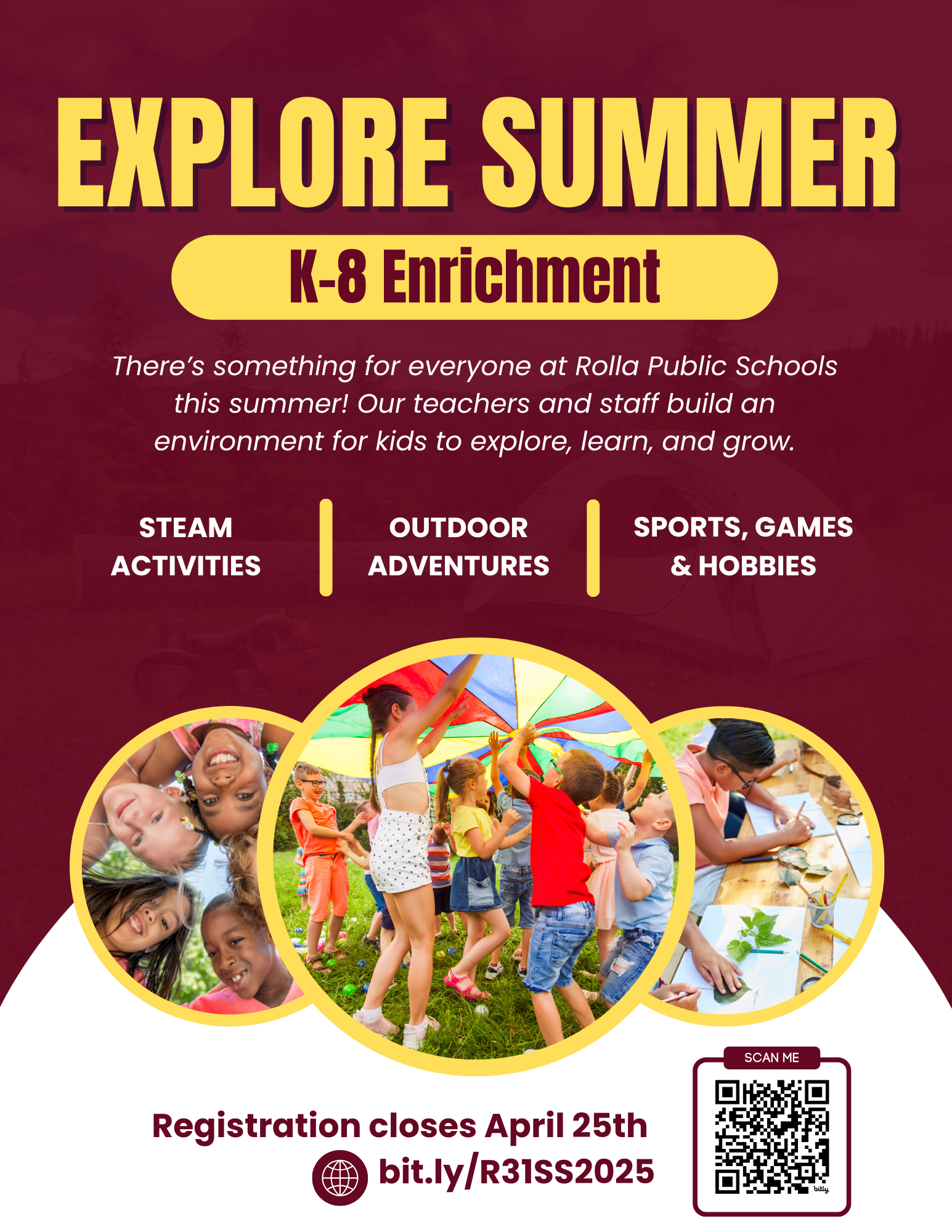 Students entering Kindergarten through 8th Grade, please register through this link: https://bit.ly/R31SS2025