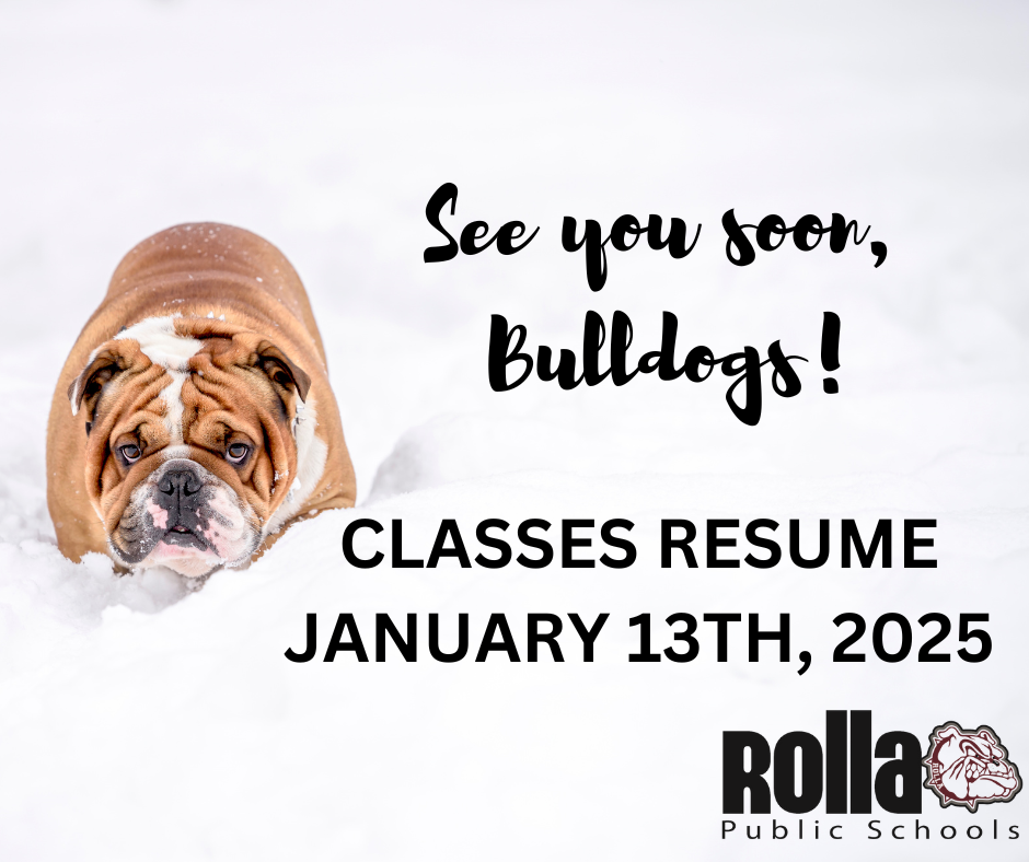 Welcome back, Bulldogs! We look forward to seeing you at school tomorrow, January 13, 2025. Buses will run regular routes with a few possible exceptions. Your driver will contact you if you are on a route with special instructions. Walkers should use extra caution on crosswalks and sidewalks, which may still be covered with ice.